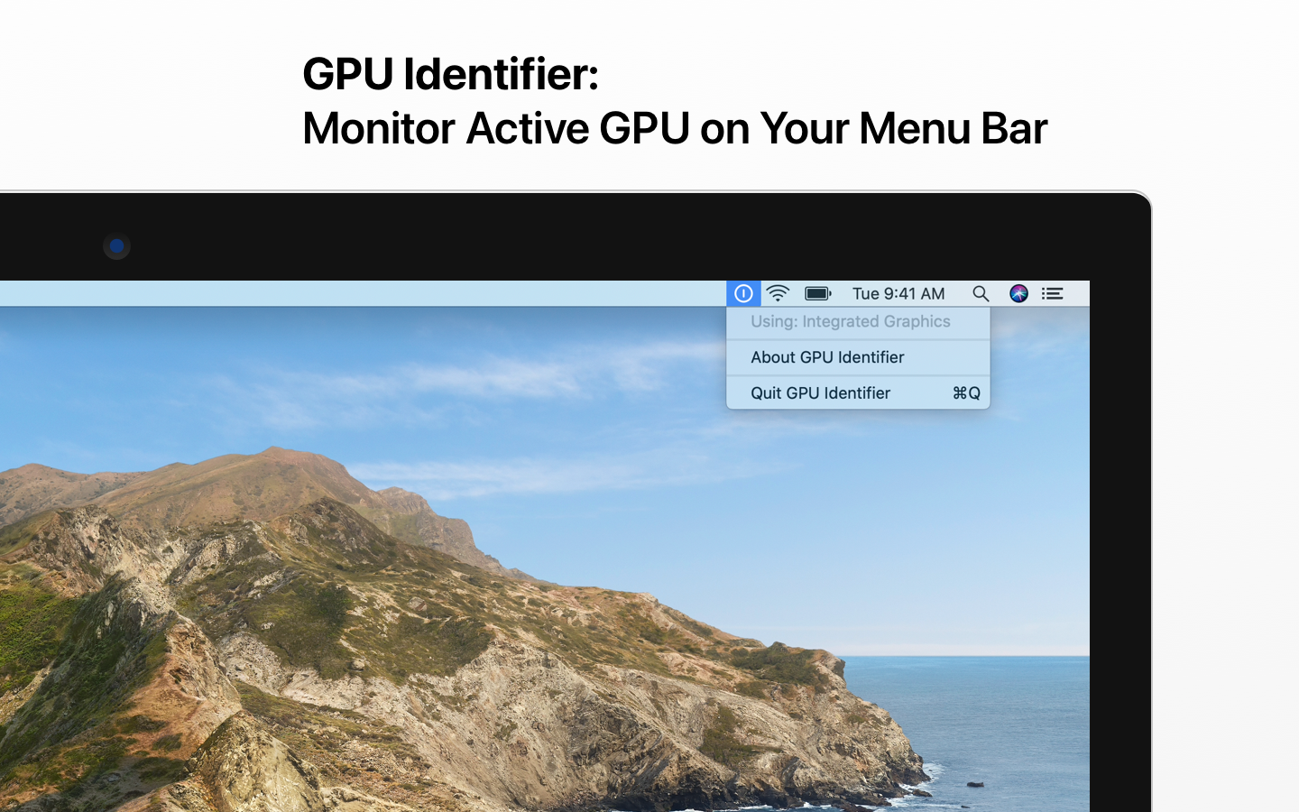 GPU Identifier is a lightweight application for your Mac’s menu bar that lets you easily see what GPU your dual-graphics equipped MacBook Pro is using.